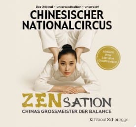 Seit jeher stehen die chinesischen Akrobaten für die gelebte Einheit von Körper, Geist und Seele. Nicht von ungefähr zeichnen sich diese Ausnahmekünstler neben ihrem großen technischen Können auch durch ein besonderes Mindset aus, angeführt von der bedingungslosen Identifikation mit dem eigenen Handeln. Ein chinesischer Handstandartist macht daher keinen Handstand, er ist der Handstand. Mit dem aktuellen Programm „ZENsation – Chinas Großmeister der Balance“ will der Chinesische Nationalcircus all jenen preisgekrönten Nummern der Vergangenheit mit einer „Best of Show“ ein Denkmal setzen. Die schönsten, spektakulärsten und berührendsten Akrobatiknummern der vergangenen Jahrzehnte – von jungen Talenten aus Chinas besten Circusschulen neu aufgelegt. Eine Kollage von Ausschnitten der 2000-jährigen Circus Historie Chinas vereint in einem neuen, emotionalen Showformat.