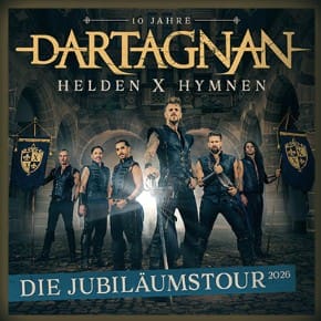 Dies ist unser Dank an euch – die treuen Freunde, die uns seit Jahren begleiten und ohne die all das niemals möglich gewesen wäre. Also erhebt das Glas, ölt die Stimmen und schärft die Schwerter: Heldinnen und Helden, singt mit uns die Hymnen – und feiert 10 Jahre DARTAGNAN! Auf der Helden & Hymnen Tour.