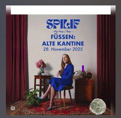 Spilif - „Elouise“ Tour 2025Die Innsbrucker Rapperin Spilif zählt zu den spannendsten Stimmen des deutschsprachigen Hip-Hop. Mit tiefgründigen, philosophischen und selbstreflektierten Texten und einem Live-Bandsound zwischen Hip-Hop, Indie und Jazz begeistert sie gekonnt ihr Publikum.