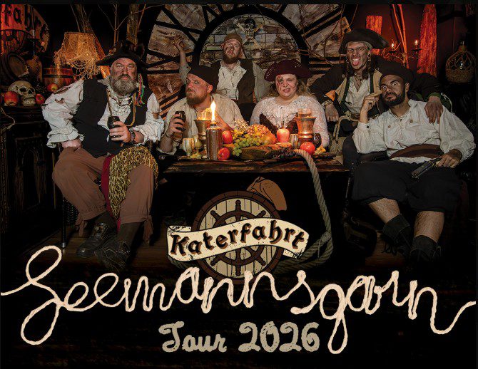 KATERFAHRT, eine sechsköpfige Crew, die mit eigenen Texten und Melodien ihren SPICED PIRATE FOLK an die Leute bringen. Geige, Flöte, Akustikgitarre das Ganze getragen von einem stampfenden und treibenden Fundament aus Schlagzeug und Bass sind die Grundzutaten des Pirate Folk Sounds, den Katerfahrt präsentieren. Dazu werden lustige bis ironische Texte in eingängigen Melodien besungen und das mit einer Stimme, die so roh und ungeschliffen klingt, wie es sich für Piraten gehört. Katerfahrt bringen eine gewaltige Energie auf die Bühne und animieren das Publikum zum Singen, Tanzen und Feiern. Sie verwandeln jeden Ort in eine Hafenschenke, in der sie von der Seefahrt, vom Piratenleben und nicht zuletzt vom Rum singen.