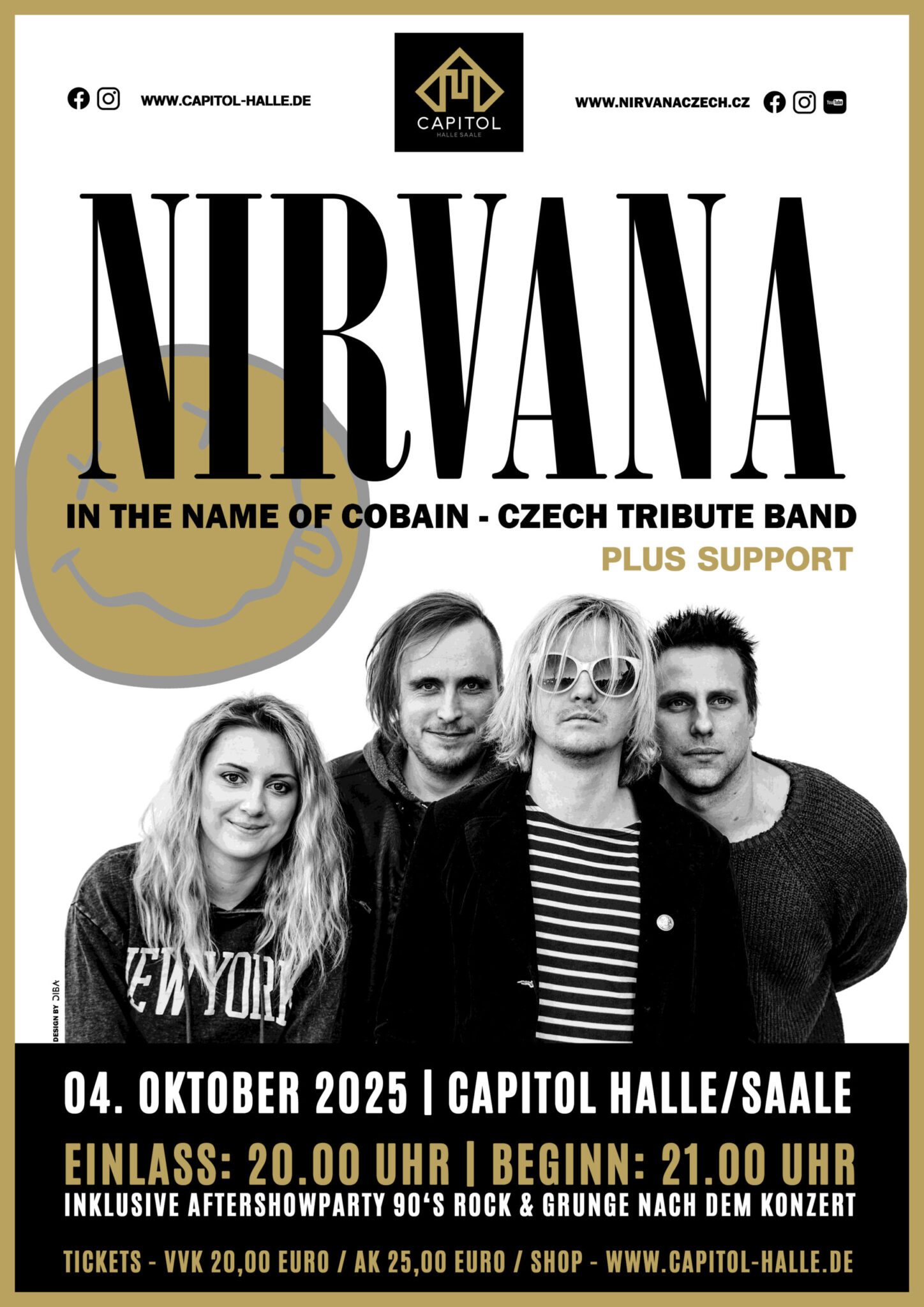 Seit 2012 wandeln 3 Musiker und eine Musikerin auf den Spuren von Nirvana, nennen sich In the Name of Cobain und spielen jedes Jahr ca. 40 Shows in Tschechien und der Slowakei.