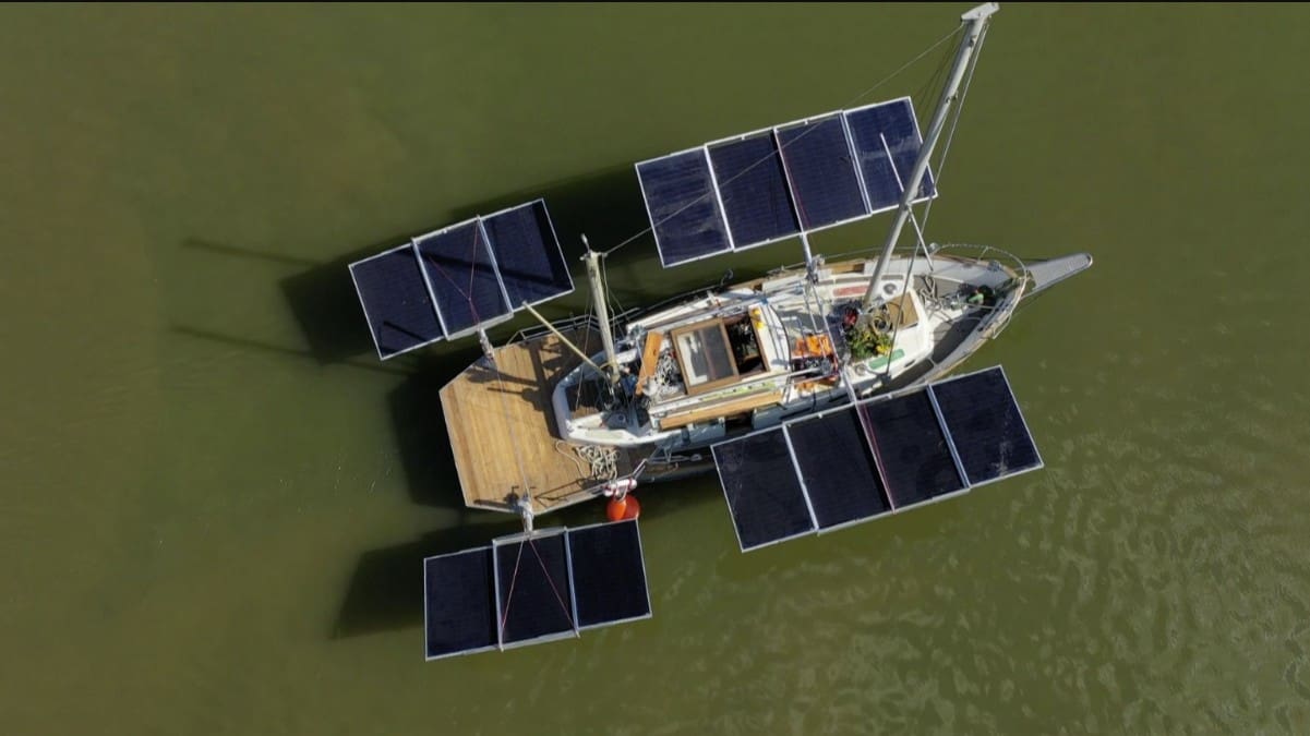Vorgenommen haben sie sich 10.000 km. Die Route soll sie von Berlin über den Rhein, den Main, die Donau, das Schwarze Meer, das Mittelmeer und via Frankreich zurück nach Berlin führen – alles CO2-neutral. Dazu haben sie ein altes Segelboot elektrisch umgerüstet und mit riesigen, satellitenähnlichen Sonnensegeln ausgestattet – alles wie immer „Marke Eigenbau“.